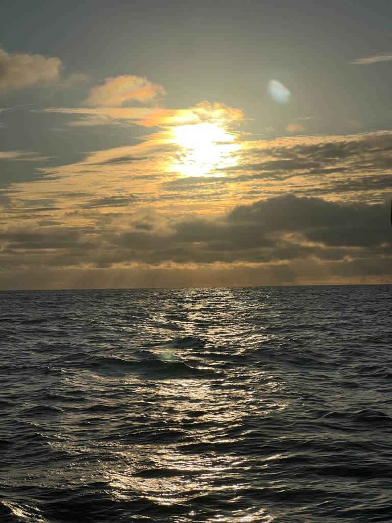 Nous contournons l’anticyclone par le nord, naviguant dans une zone de vents faibles. Sous spi jusqu’à demain, nous attendons la première dépression qui nous propulsera vers l’Europe !