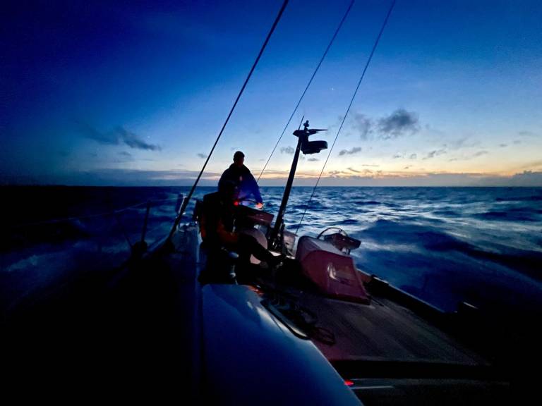 Les dépressions s’enchaînent, mais le moral reste bon ! Nous avançons avec prudence, sachant que plusieurs scénarios restent possibles pour l’arrivée. Le record dépendra du déplacement de l’anticyclone sur les îles britanniques en fin de semaine.